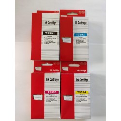 Sæt 4 stk. Epson 35XL (BK,C,M,Y), Kompatible patroner. Hele sættet af 35XL patroner med henholdvis kapacitet på op til 2.600 sider for BK og op til 1.900 sider for hver af farvepatronerne.